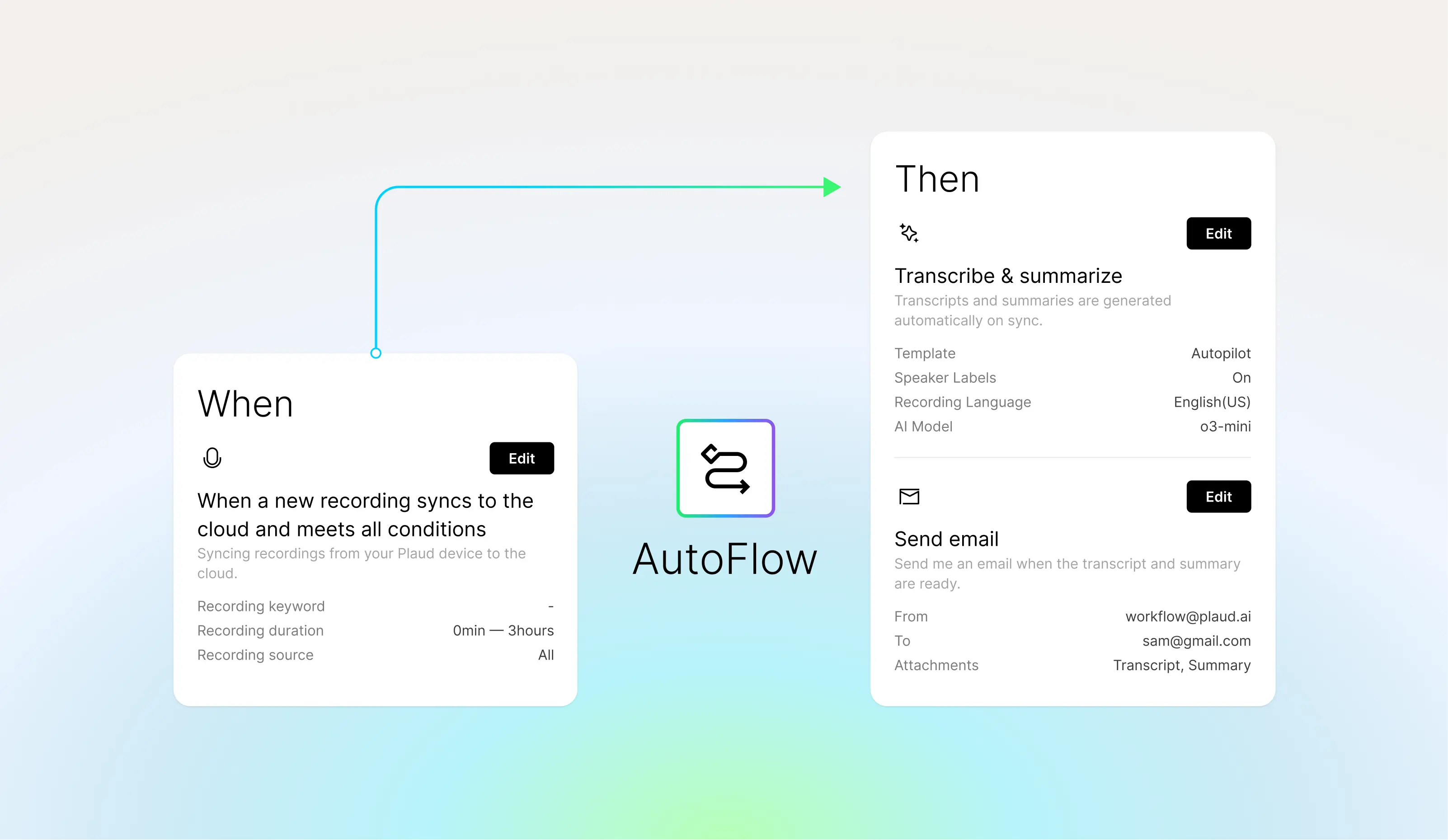 From meetings to compliance reviews, Plaud captures, extracts, and utilizes every discussion. With AutoFlow, updates are auto-delivered to your email inbox — so nothing gets lost in handoff.
