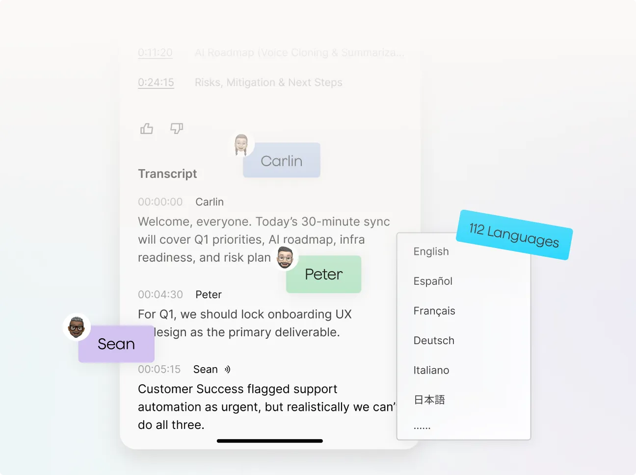 Plaud delivers precise transcriptions in 112 languages, with speaker labels and custom vocabulary tuned to your industry.