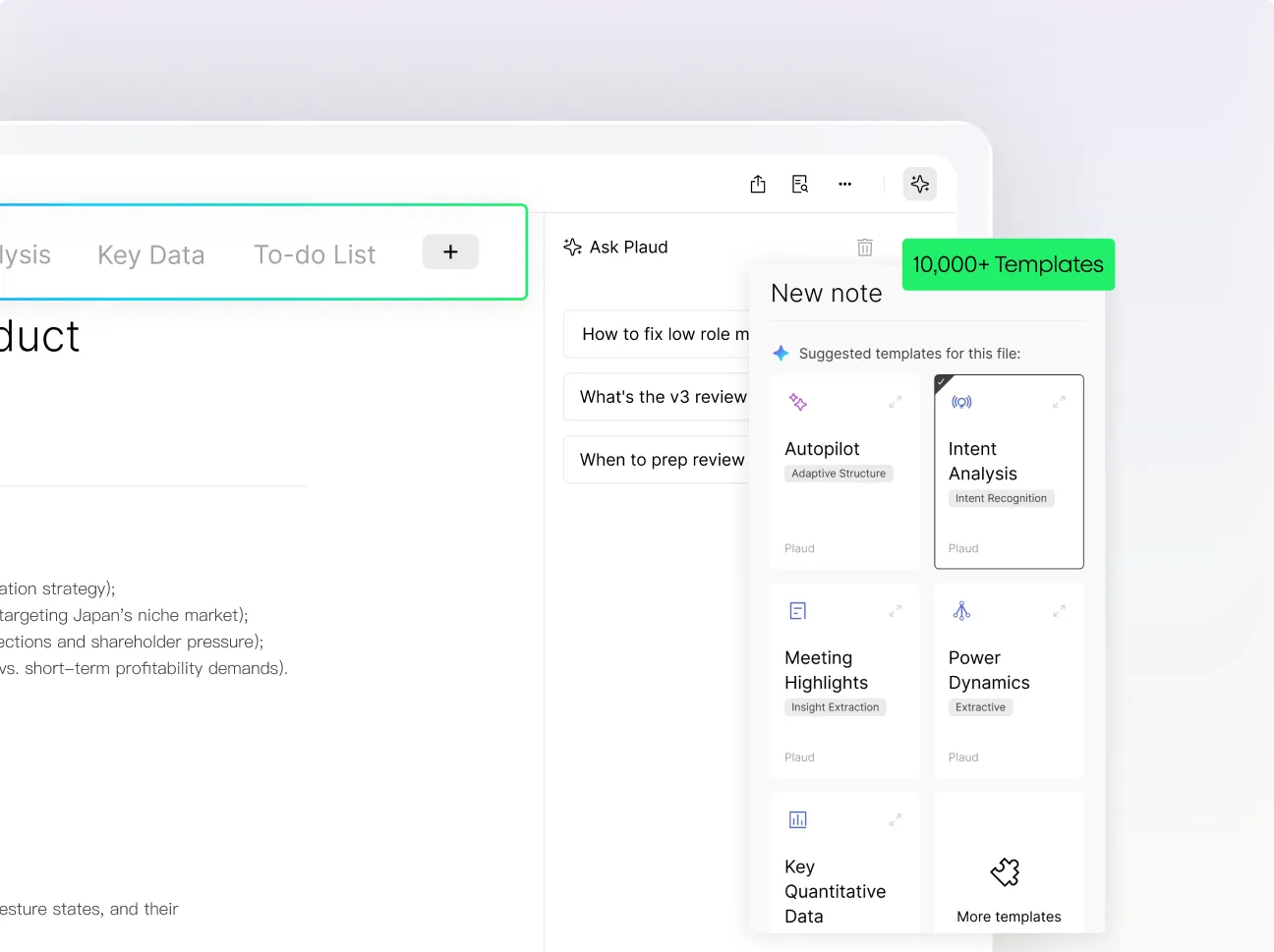 Get reference-backed answers you can rely on. Save them instantly as notes to keep everything organized. With smart suggestions, Plaud helps you ask better questions and go deeper, while global search lets you find insights across all your files with ease.