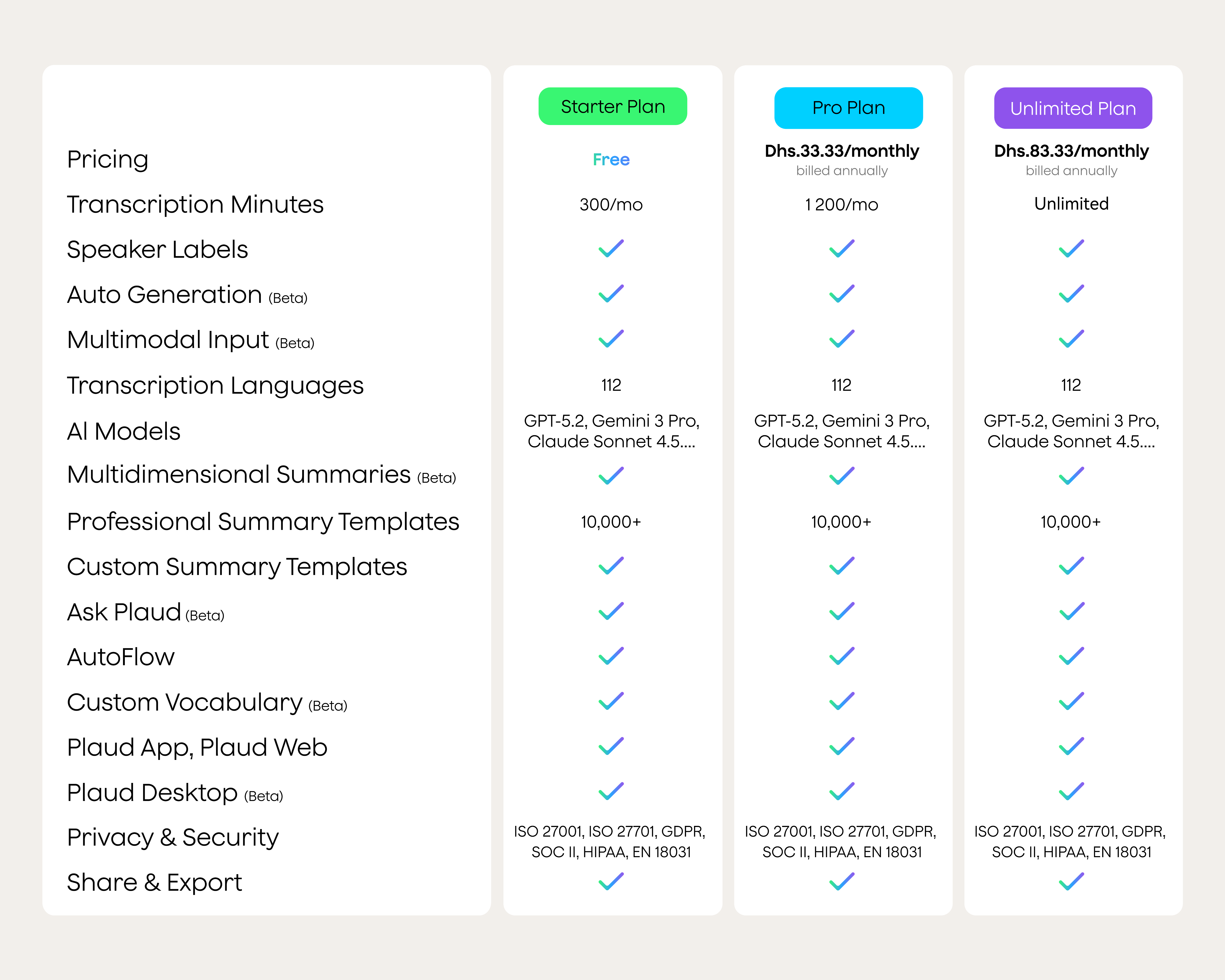 Is Plaud HIPAA / SOC 2 / GDPR / EN 18031 / ISO 27001/ 27701 compliant?