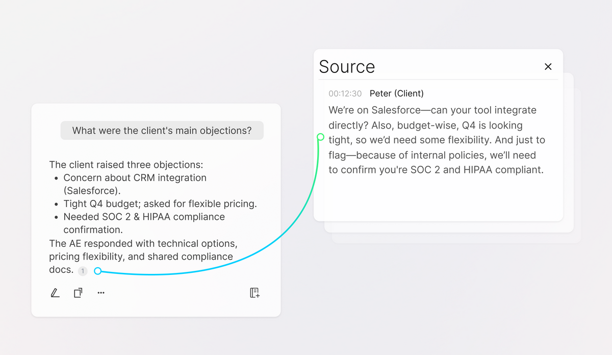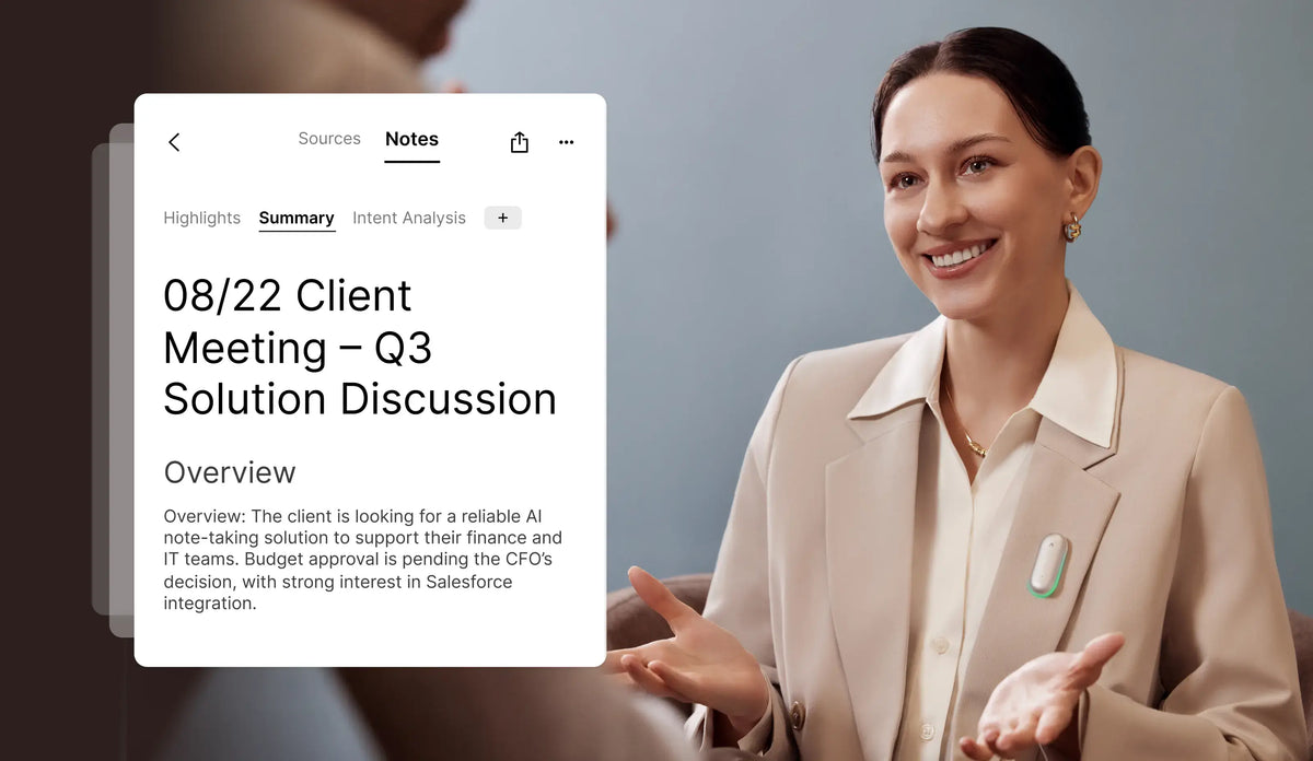 Stay focused in the room while conversations are captured, processed, and structured intelligently with context and nuance.